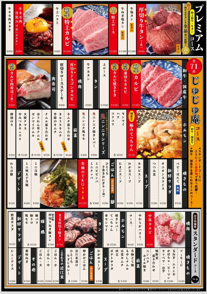 Our highly recommended course for a truly satisfying meal! Indulge in 71 dishes, including Wagyu, offal (horumon), and a wide variety of side dishes.